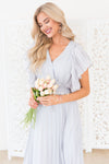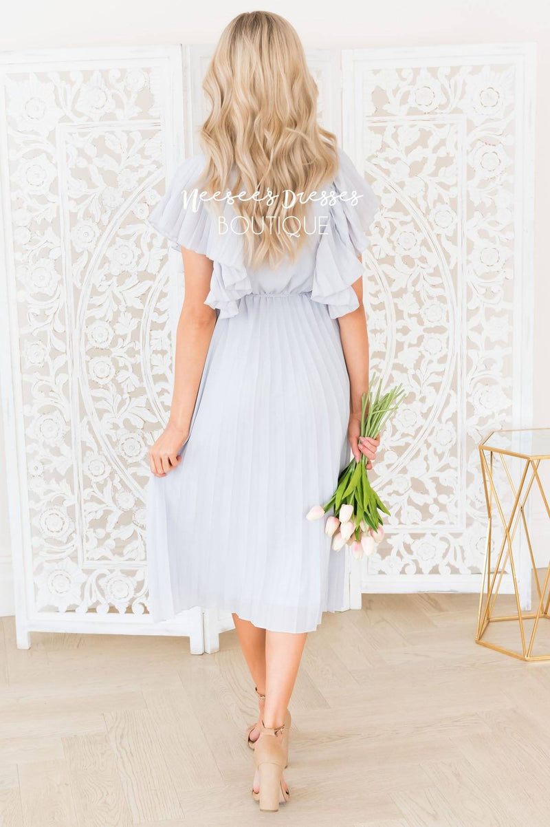 The New Karli is a must have! The lovely feminine pleated detail throughout this gem are to die for! We simply can not get over all the darling details! V-neckline with button closure, flowy pleated sleeves, belt tie and last but not least a full lined pleated skirt.