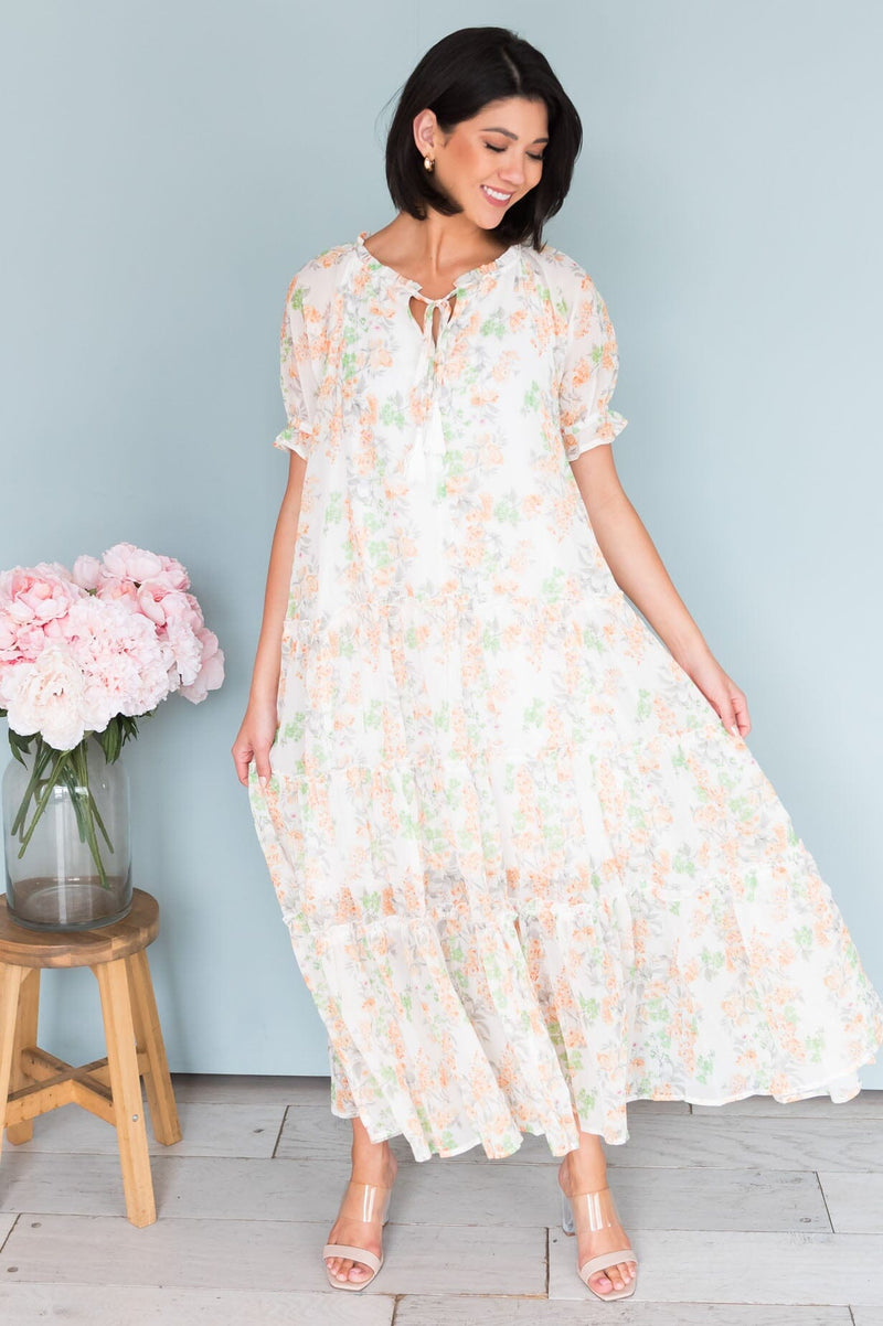 The dreamy Kasia is here and we can not get enough! This lovely feminine floral, short puff sleeve dress is bound to be your go to dress! This beauty has the most gorgeous ruffled neckline with darling tie detail. Grab yours these won't last long!