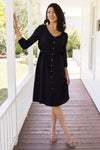 Say Hello to our new Kasyn dress! Class and beauty all in one dress. This dress features modest scoop neck, lovely faux button front, quarter length sleeves, elastic waist band and the perfect length flowy skirt. It has softest material ever! Trust us, you do not miss out on this beauty and get yours today.