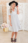 The gorgeous Katherina is our new favorite little polka dot beauty! We are loving all the delicate detailing in this one! The crossover bodice makes this dress nursing friendly and so stylish in one. Get yours today because these dresses will go fast!
