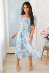 Our new Katieann is perfect for picnics, date night, church or just because you're feeling cute! Features include, squared neckline with a smocked bodice, short puff sleeves and a ruffle hem skirt in our favorite tea-length. Grab this perfect for Summer beauty today!