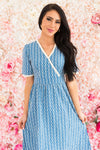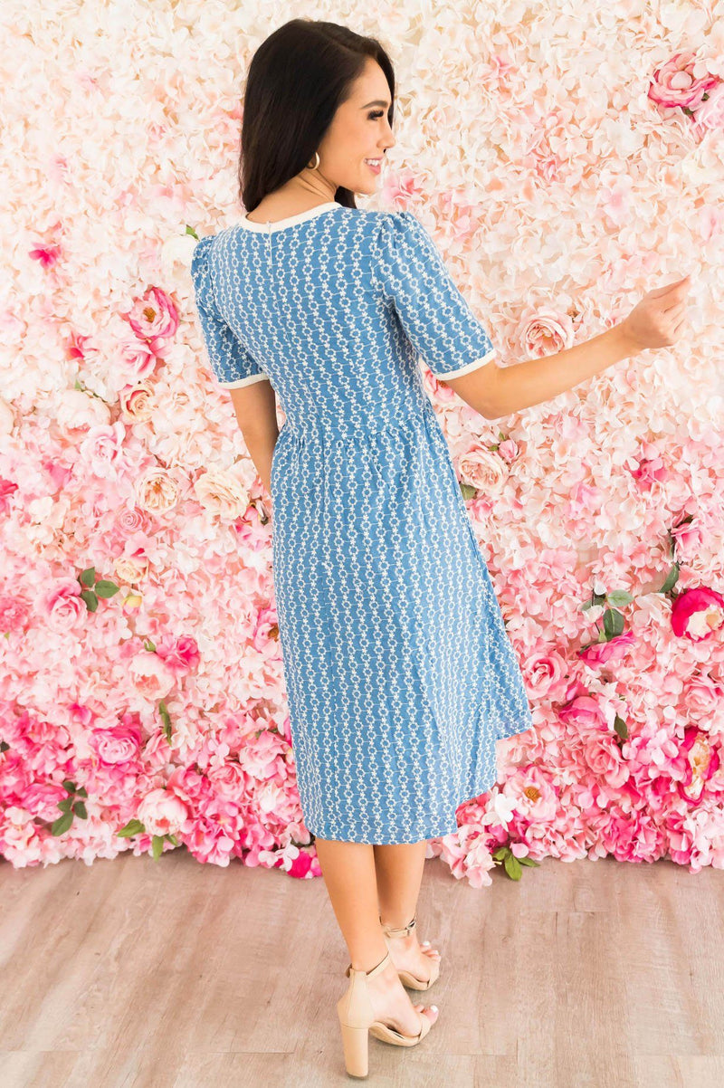 This darling little embroidered dress is the absolute perfect pick for your wardrobe! It's perfect for a day out shopping or a day in the office! Featuring short puff sleeves, cross-over bodice and our favorite modest length! Get yours before these beauties are gone!