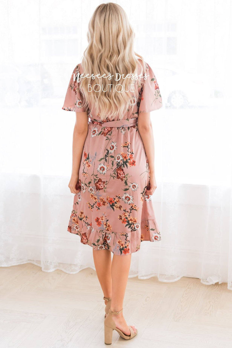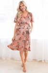 Satin floral beauty is the name of the game with this darling modest dress! The Kaylene has some lovely modest features to include. A cross-body bodice with button closure, perfect for all you nursing mama's, short flutter sleeves, elastic waist with belt tie and is fully lined. Not to mention the lovely classy vintage floral print, this one is a must have!