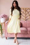 This stunning dress will brighten anyone's day! The quarter-length sleeves, pleated waist-line, and simple design is perfect from top to bottom! We can not get over those sensational and functional pockets! This beloved color is bound to make you happy from the inside and out!