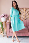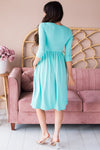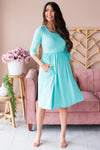 This stunning dress will brighten anyone's day! The quarter-length sleeves, pleated waist-line, and simple design is perfect from top to bottom! We can not get over those sensational and functional pockets! This beloved color is bound to make you happy from the inside and out!