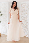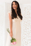 This lovely chiffon pleated maxi dress is bound to grab attention! Featuring darling pleated bodice and skirt, soft v-neckline with lace detailing, lace back bodice with zipper back closure, flutter sleeves and a romantic flowy skirt. Get yours today!