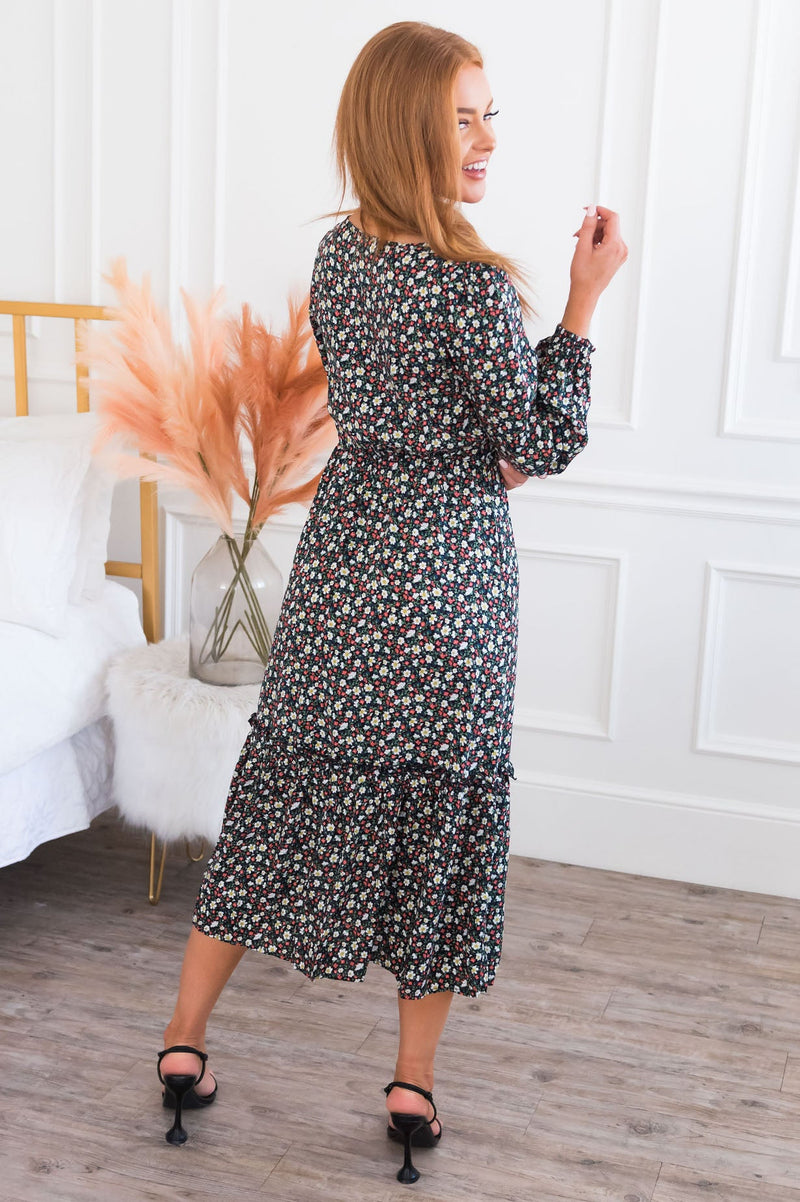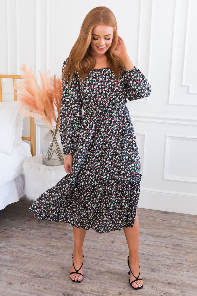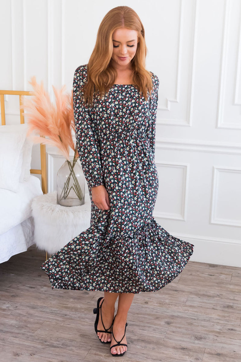 The Kensington Modest Floral Dress is a definite must have for every wardrobe! The lovely flowy ruffle tiered skirt and squared neckline add the perfect amount of flair! This dress is bound to be the perfect dress for any occasion during any season! Get yours today!