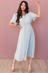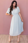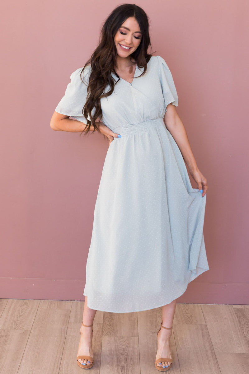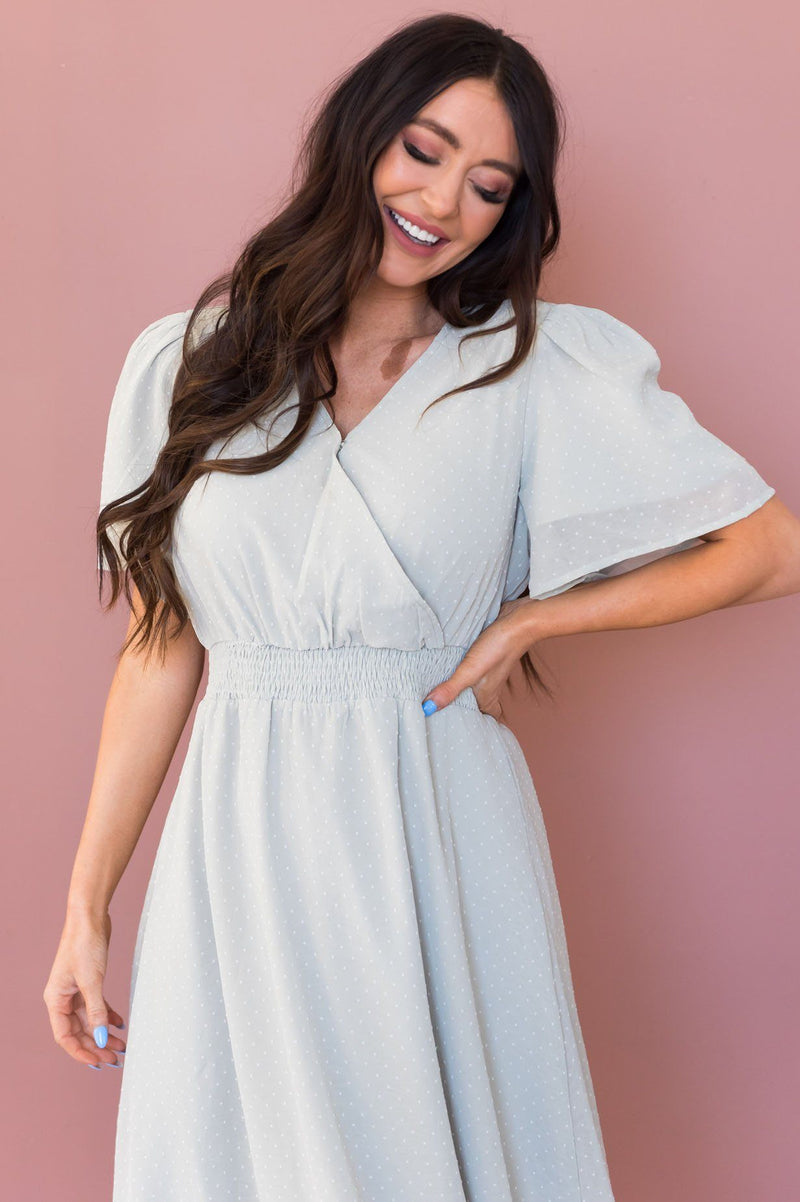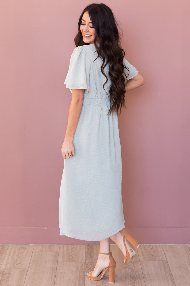 This striking and beautiful gown will be sure to steal the show! We just are obsessed with the delicate polka dot pattern, functional button top and smocked waistline to complete this dress' perfect look!