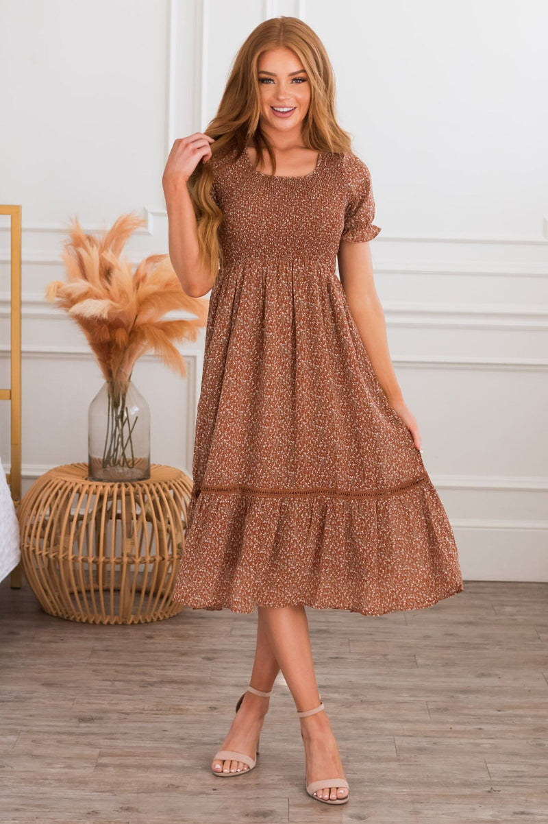 The Kerith has arrived just in time to swoop us off our feet this Fall! This darling little mini floral dress is a must have for every Fall wardrobe! Imagine pairing this smocked bodice, short puff sleeve with your favorite sweaters and boots! Get yours today!