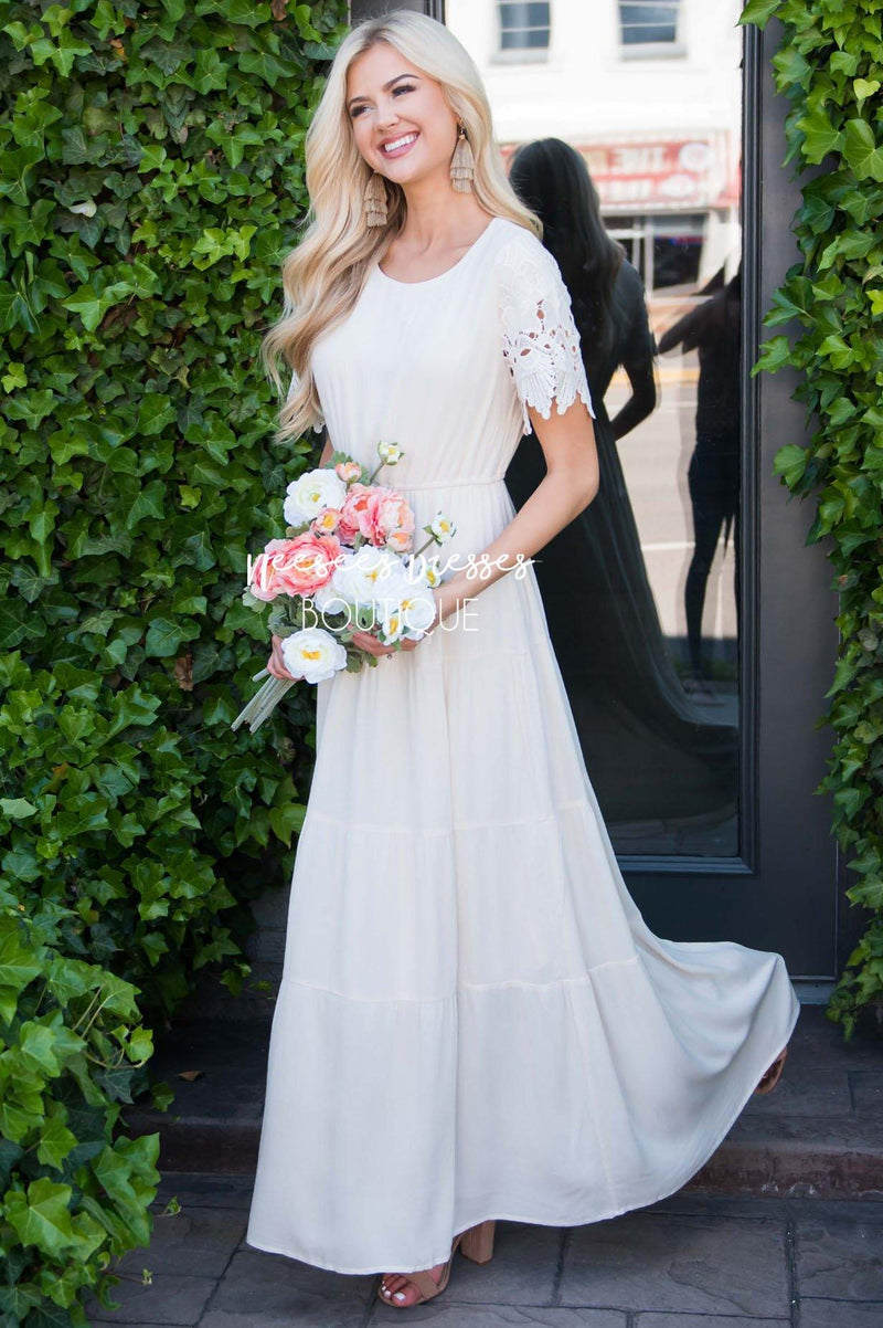 Another cute maxi dress here to steal the show! We are obsessed with the the gorgeous lace sleeves. This dress features a round neckline, keyhole button closure on back of neckline, elastic waistband, tiered skirt and comes fully lined. This is going to be perfect for all those special occasions you have coming up in your life!