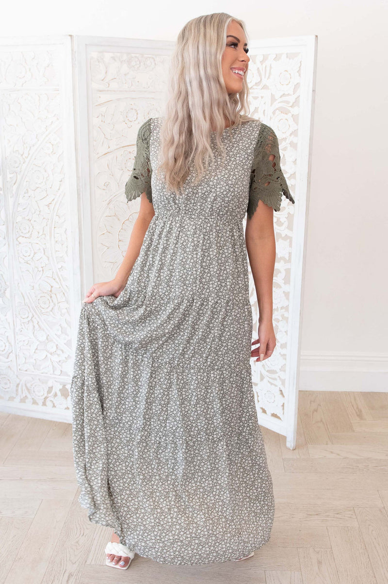 Another cute maxi dress here to steal the show! We are obsessed with the the gorgeous lace sleeves. This dress features a round neckline, keyhole button closure on back of neckline, elastic waistband, tiered skirt and comes fully lined. This is going to be perfect for all those special occasions you have coming up in your life!