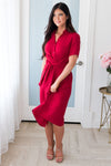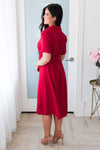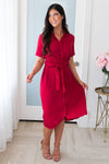 This flattering dress is sure to catch everyone's eye! Our new, modest, Khora Dress, features a collared neckline, functioning front buttons (ideal for nursing mothers) and a wrap waist tie detail.