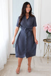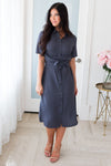 This flattering dress is sure to catch everyone's eye! Our new, modest, Khora Dress, features a collared neckline, functioning front buttons (ideal for nursing mothers) and a wrap waist tie detail.