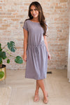 This new Kia is as cute as they come! There is nothing not to love about this new beauty. Featuring short cuffed sleeves, an elastic tied waistline, pockets, and gorgeous mocha gray color! We are absolutely in love with this new arrival!