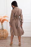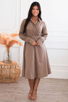 The classy Kierian is beyond words! We can not get over how much we love this dress! It is perfect for any occasion and season, a must have for every wardrobe! Featuring a collared neckline, functional button front bodice, gorgeous unique cross-body belt tie waistline, long sleeves and the perfect length flowy skirt. Get yours today!