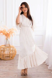 The classy Kierian is beyond words! We can not get over how much we love this dress! It is perfect for any occasion and season, a must have for every wardrobe! Featuring a collared neckline, functional button front bodice, gorgeous unique cross-body belt tie waistline, long sleeves and the perfect length flowy skirt. Get yours today!