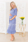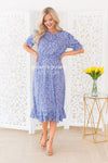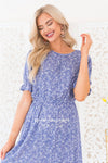 This periwinkle floral dress is a dream come true! Featuring modest round neckline with keyhole button closure, short puff sleeves, elastic waist and a double ruffle hemline you simply can not go wrong with this beauty!
