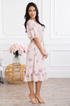 The Kiki is the sweetest little floral we have ever seen! We are so in love with the fit and style of this dress! Features include half length puff sleeves, round modest neckline, banded elastic waistline and the perfect length ruffle hem skirt!