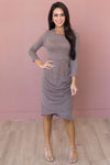 Wanting that perfect dress for all those fall outings you have coming up? Look no further the new Kiley is going to be your new go-to! This dress has all the perfect details that everyone will love. The skirt features a faux wrap detail as well as a side ruching, a round neckline, 3/4 length sleeves, elastic waistband and the most stretchy cozy soft ribbed thermal material!