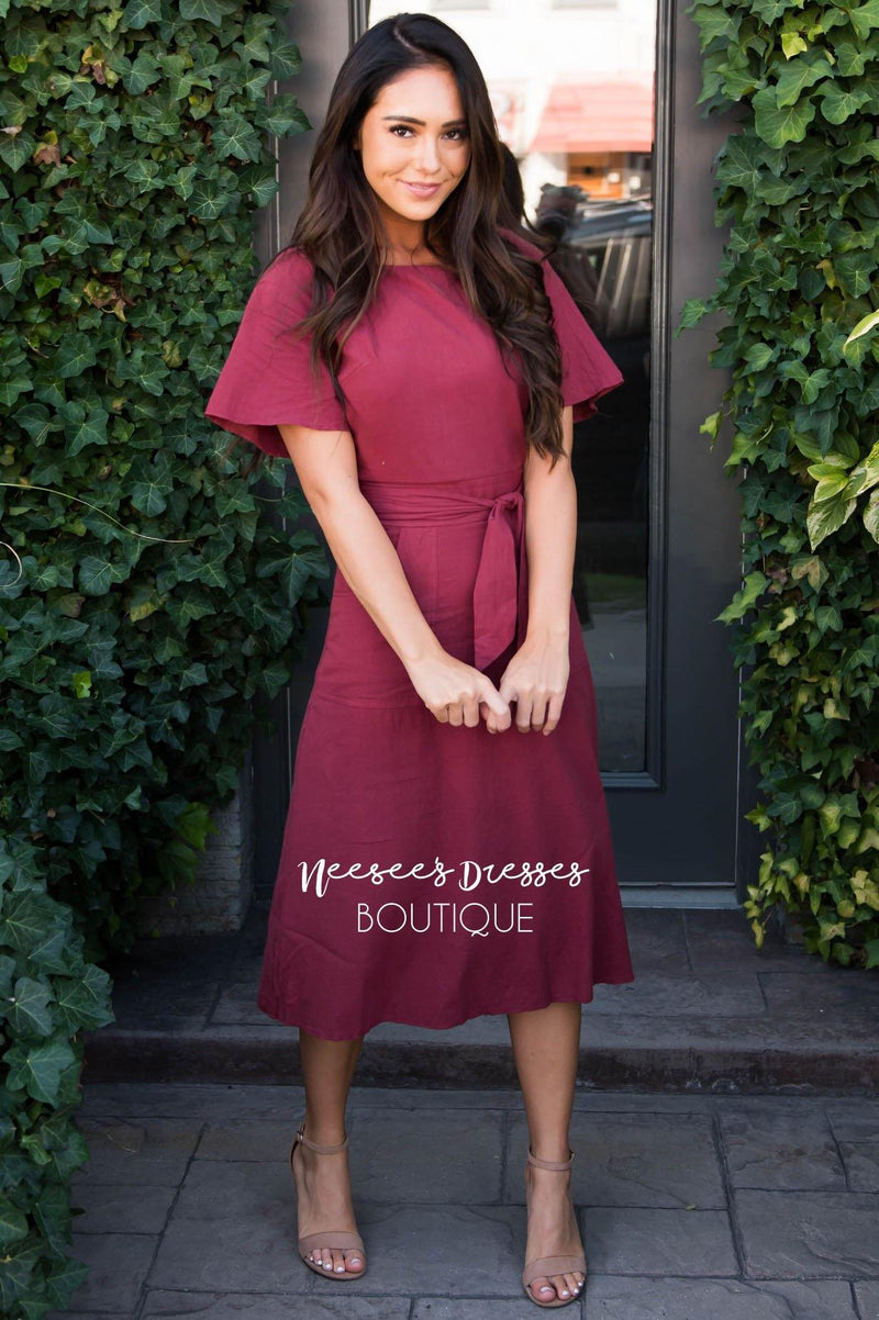 The New Kinga is bound to be your next go-to dress! This dress features a round neckline, very comfortable material, short flutter sleeves, zippered back closure, self tie belt detail, which can be worn tied in front or back, pockets and comes lined everywhere except the arms. Grab yours today!
