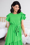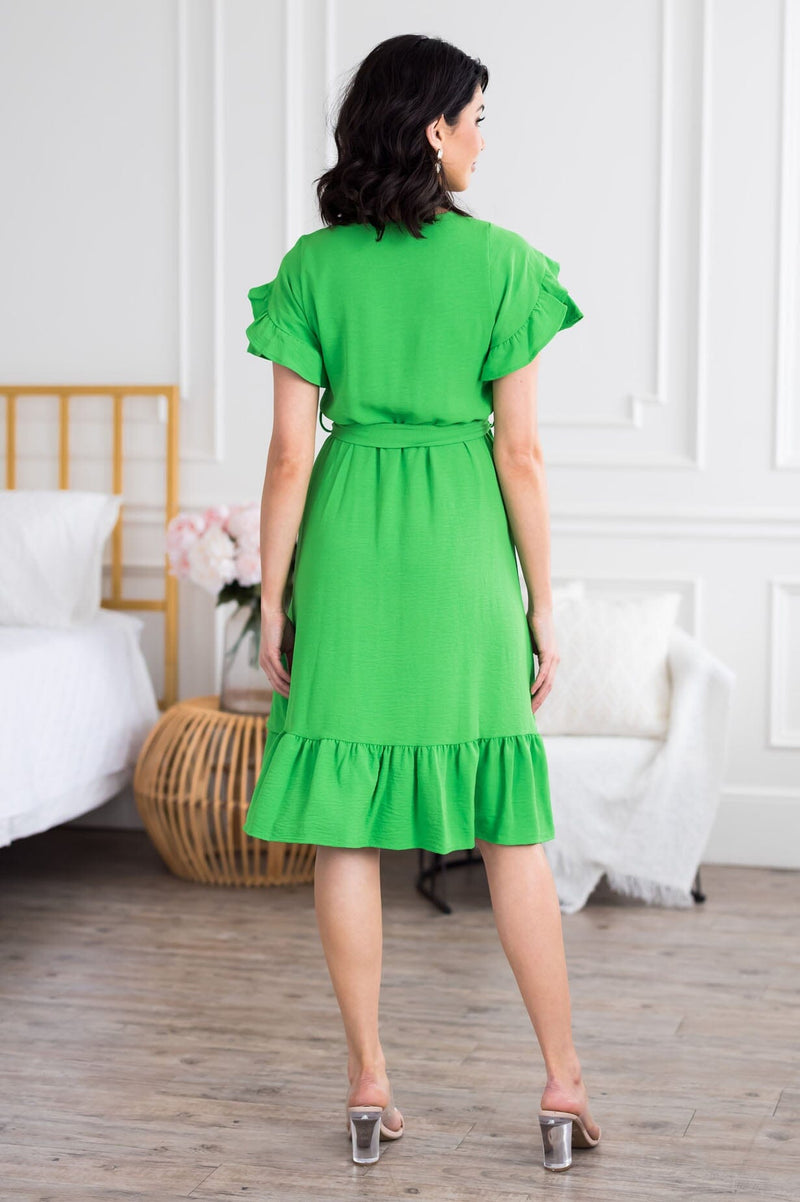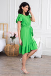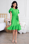 The new Kirliam dress has arrived just in time for all of your favorite Spring & Summer events! We are so in love with cross-over ruffled hem skirt detailing, ruffled cross-over short sleeves, belt time waistline and modest round neckline! Trust us, you won't want to miss out on this textured beauty!