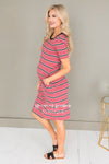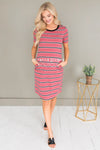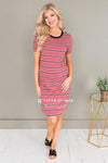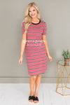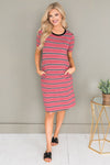 When comfy meets causal you get this striped cutie! Our gorgeous Kori is sure to be the comfiest dress you own this season. The color scheme is so perfect for the summer season! Other things to love about this dress include the crew neckline, short sleeves and it has pockets! The Kori is going to be your new running errands dress!