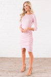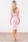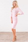 Wanting that perfect dress for all those outings you have coming up? Look no further the new Kortney is going to be your new go-to! This dress has all the perfect details that everyone will love. The skirt features a faux wrap detail as well as a side ruching, a round neckline, 3/4 length sleeves, elastic waistband and the most stretchy cozy striped jersey material.