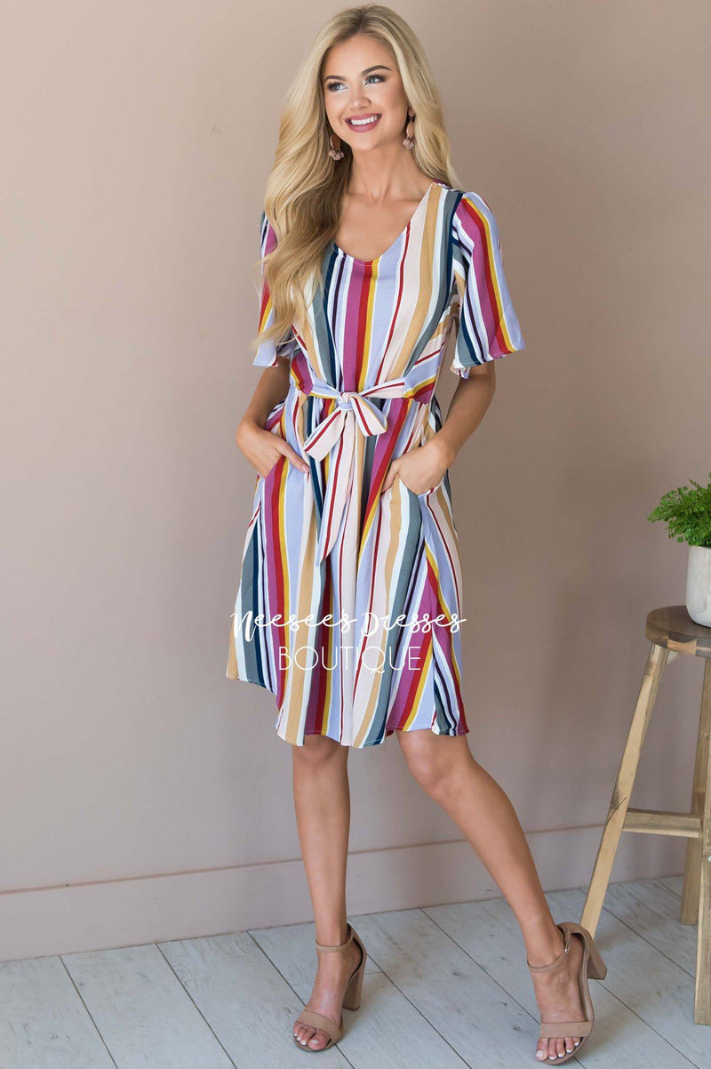 Wanting to add a pop of color into the mix of your fall wardrobe? Well look no further the Krishna is going to be the perfect dress for you! The color scheme is so unique and so beautiful that all eyes are going to be on you anytime you wear this dress. It features a U-shaped neckline, short flutter sleeves, non-removable tie waist detail and it has pockets!!