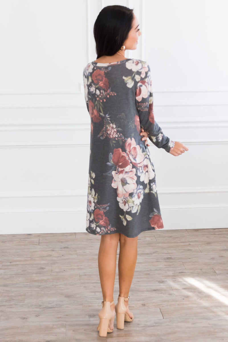 Swing dresses are so chic, stylish and modest, we simply can not get over these Krystal dresses! Super soft and classy floral print, long sleeves and swing style skirt, you can not go wrong with this little beauty! Get yours today!