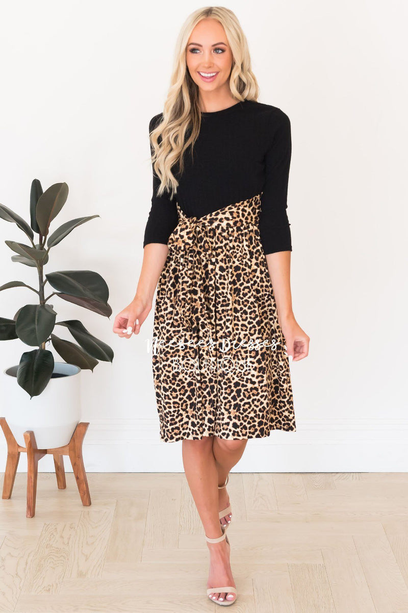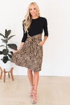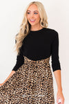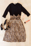 The Kyle is bound to be your next go to dress, this dress made our hearts skip a beat, it's truly one of a kind! Featuring a round neckline with ribbed bodice, 3/4 length sleeves, belt tie and classic animal print skirt with pockets. Get yours today!
