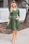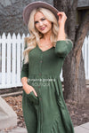 This modest beauty checks all the boxes! Soft, classy, perfect for any occasion get yourself the Kyler today! Dress features as always, modest length, round neckline with faux button front, perfect length 3/4 sleeves and front pockets. Get yours today before they're gone!