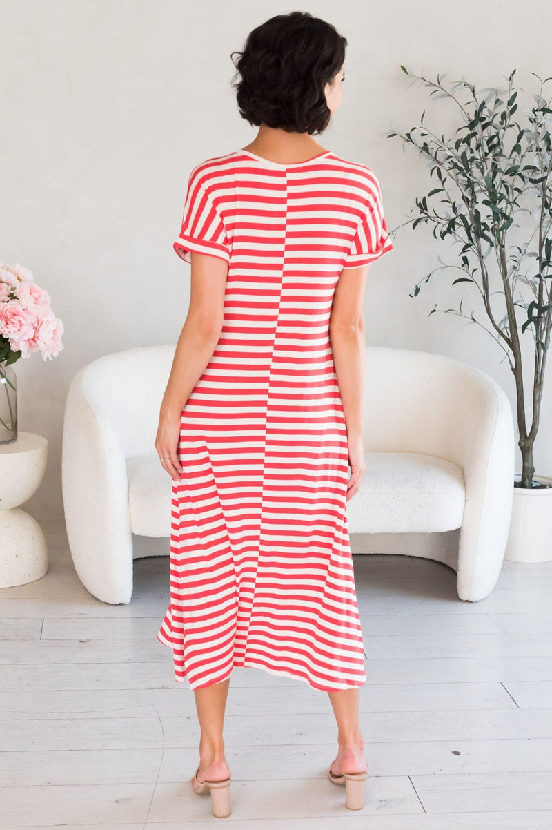 Classic stripes are always bound to steal the spot light! This cozy, flowy casual dress has got to be your next Summer must have! Pair it with your favorite jean jacket and you are on your way in style!