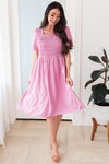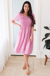 This dusty magenta colored smocked top dress is everything this spring! We know this dress will not only bring life and color to any wardrobe, but to any occasion too! The loose cap sleeves and flowy skirt on this dress is nothing less than perfect!