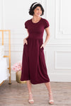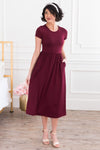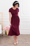 Simple and sweet, the new Lacynda is going to be the perfect dress, you'll be grabbing for this one again and again! Featuring the classiest modest neckline with short sleeves, elastic gathered waistline, pockets and the perfect tea-length skirt. Get yours today!