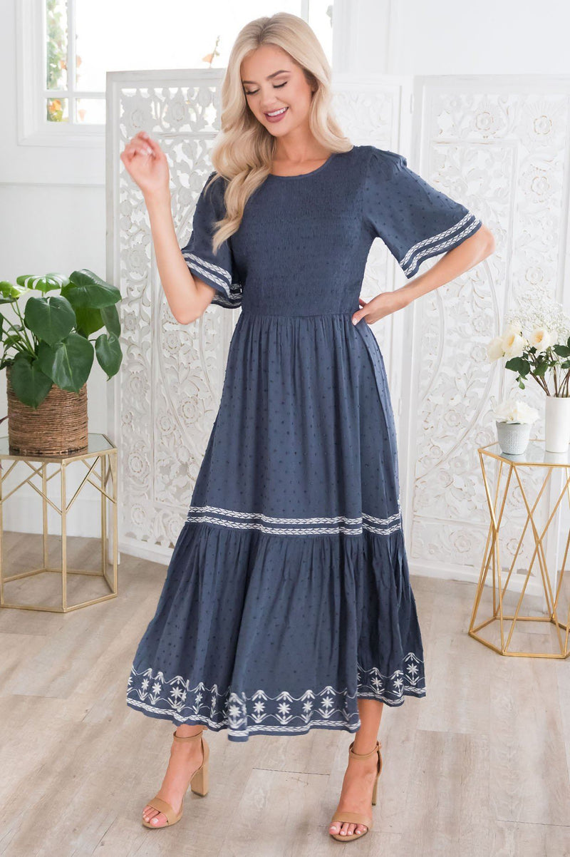 If you have been searching or the perfect maxi length embroidered dress, we have got you covered! This darling new Lane dress has got all the best features to ensure a flattering fit for any figure! Get yours today!