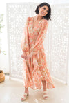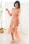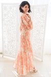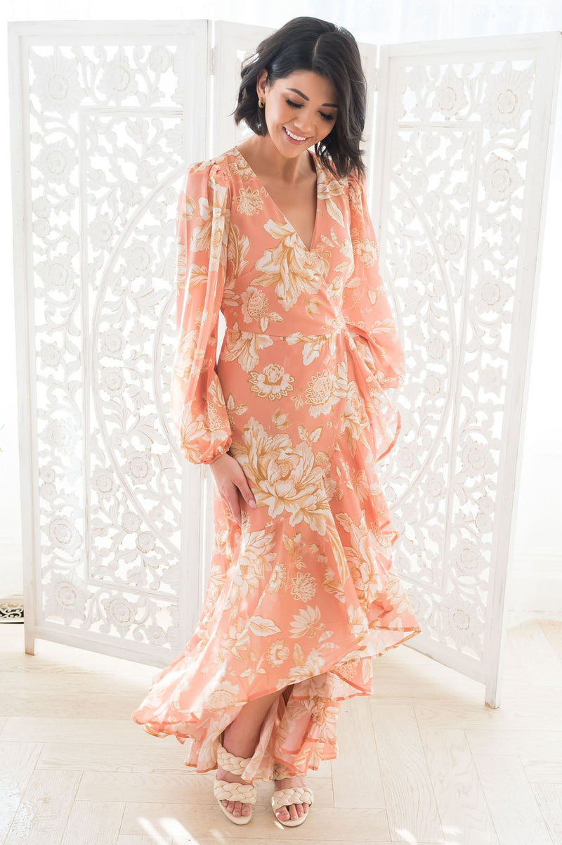 We are obsessed with this gorgeous nursing friendly dress! With amazing features such as the stunning peach, ivory and taupe floral print throughout, cross-over bodice that is nursing friendly, a side seam zipper, and ruffle wrap skirt! Get yours today!
