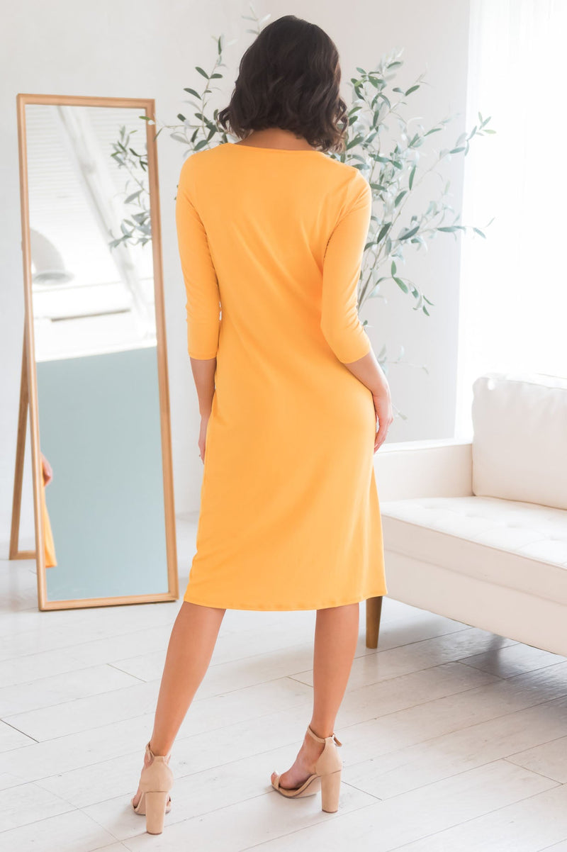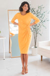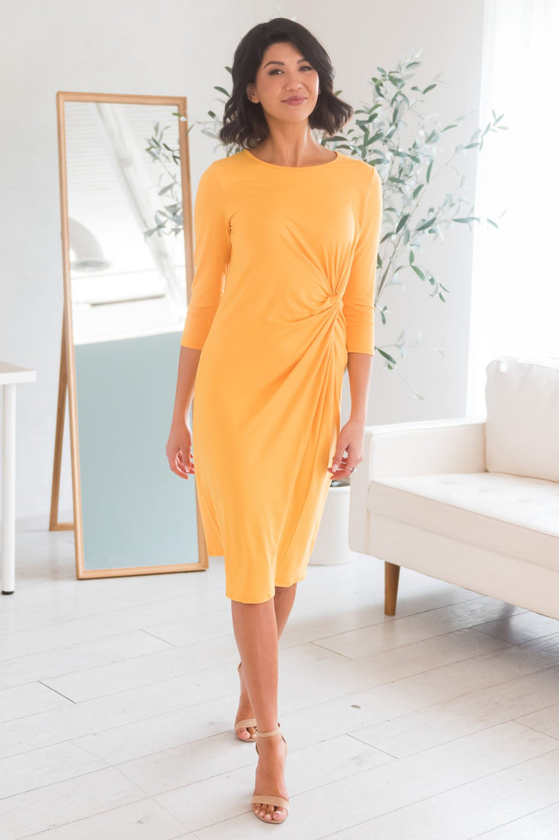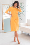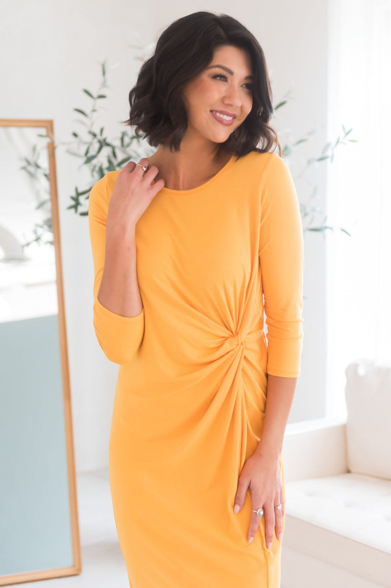 The perfect little Lanie Jane has arrived and trust us when we say, you need this dress! This modest beauty has all the best features to include, 3/4 length fitted sleeves and the most flattering side knot waistline detailing! Get yours today!