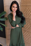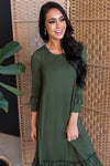 You're sure to fall in love at first sight with this darling classic ruffle dress! Featuring a feminine yet relaxed modest fit and style, it's sure to stand out from the crowd! The soft jersey material is so cozy and perfect for pairing with your favorite scarf or cardigan!
