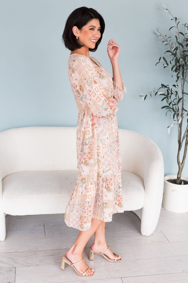 We've got the best new classic modest go to dress for you! The Lark features quarter length sleeves, the most delicate feminine floral, soft v-neckline and a flowy ruffle hem skirt. Get yours today, these beauties won't last long!