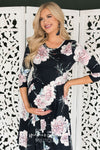 You are not going to want to go through the summer season without this dress being a part of your wardrobe. The Laura, features a modest round neckline, 3/4 length sleeves, pleated elastic waistband, pockets and the softest material you will ever own! What are you waiting for? Add this to your cart now!