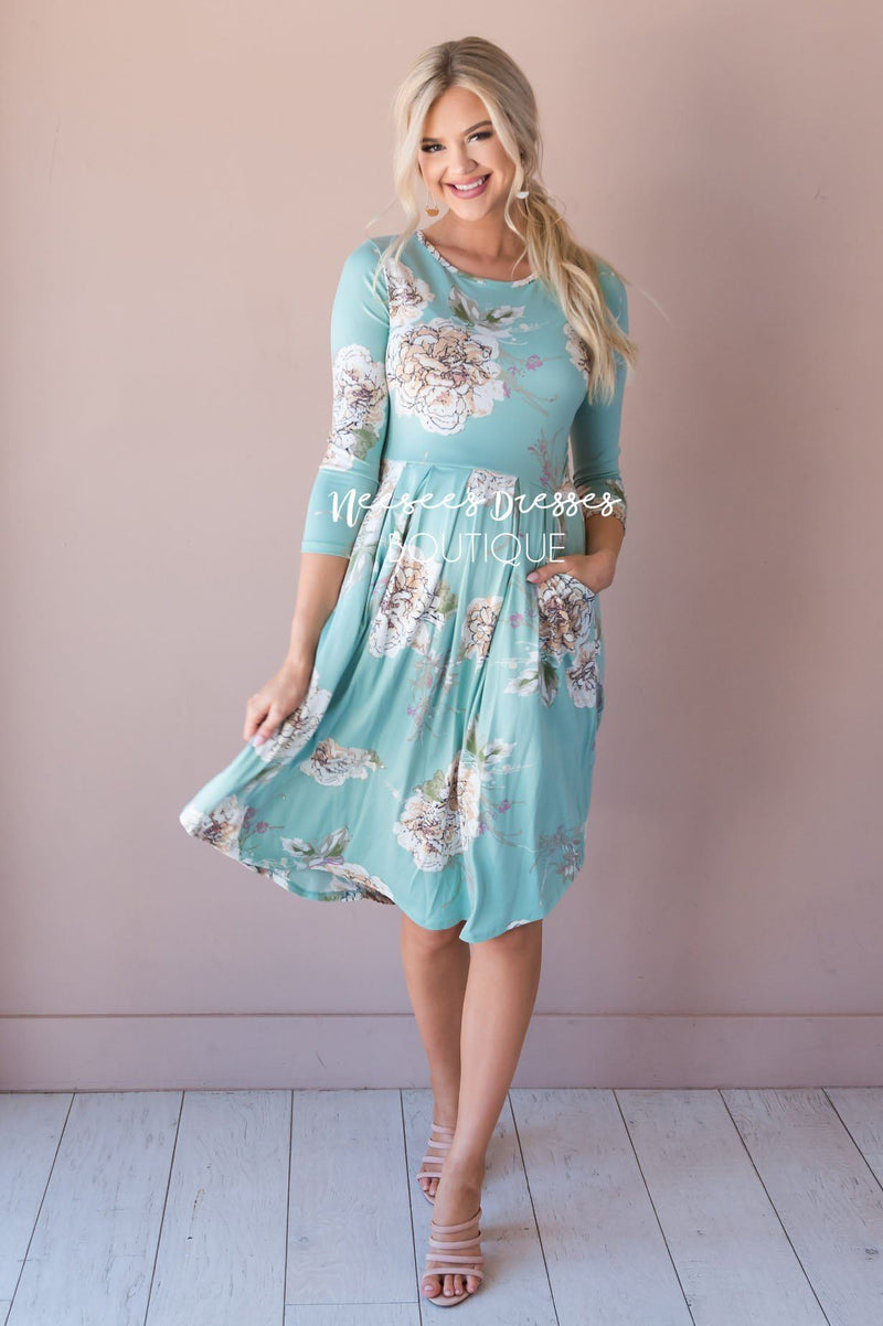 You are not going to want to go through the summer season without this dress being a part of your wardrobe. The Laura, features a modest round neckline, 3/4 length sleeves, pleated elastic waistband, pockets and the softest material you will ever own! What are you waiting for? Add this to your cart now!