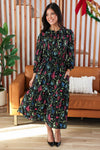 We just brought you the most beautiful, eye catching, modest dress, perfect little Winter floral is a must have! This beautiful dress features modest neckline with functional button front bodice, flattering elastic waistline, long sleeves, pockets and the perfect length skirt.