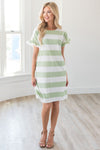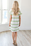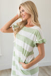 This fabulous stripped dress is perfect for any summer day you have coming up! The wide stripe design and ruffle sleeves makes this stylish dress one you don't want to miss! We know this terry cloth fabric and simple fit are going to be a modest fan favorite!