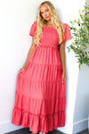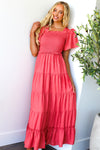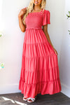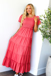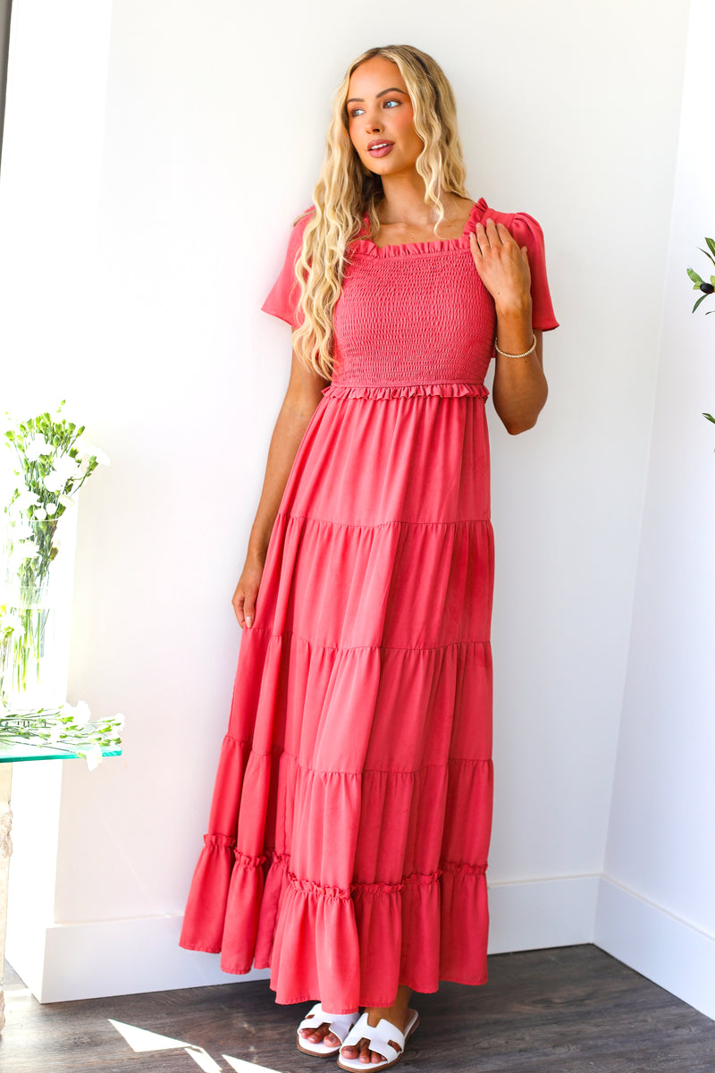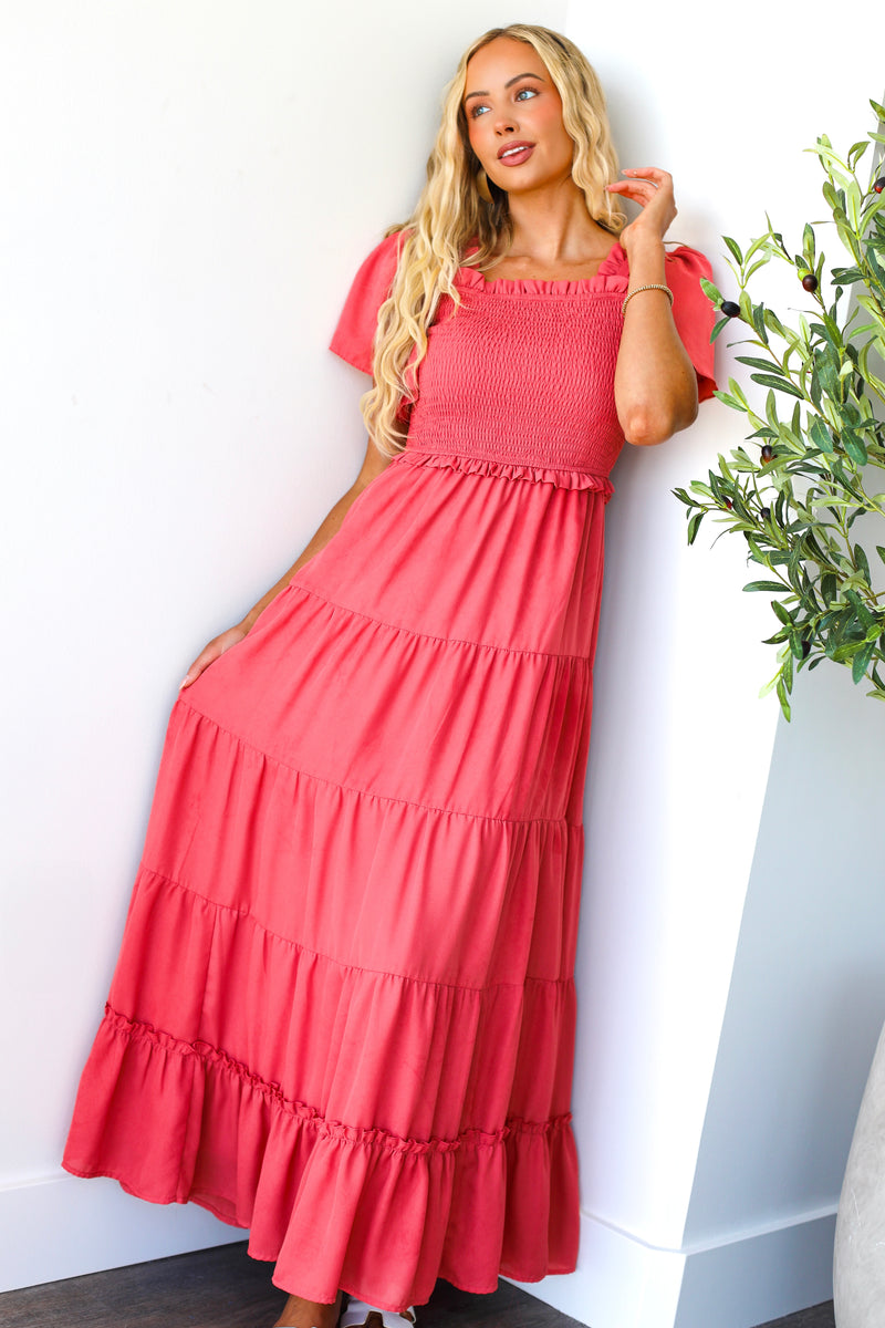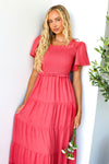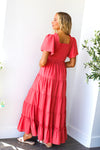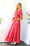 The Leigh is so gorgeous and we are so thrilled to share it with you! Featuring a flattering smocked bodice, short flutter sleeves and the flowiest tiered skirt. We simply can not get enough! Paired with the lovely raspberry color, it is bound to be the perfect Summer dress!