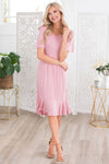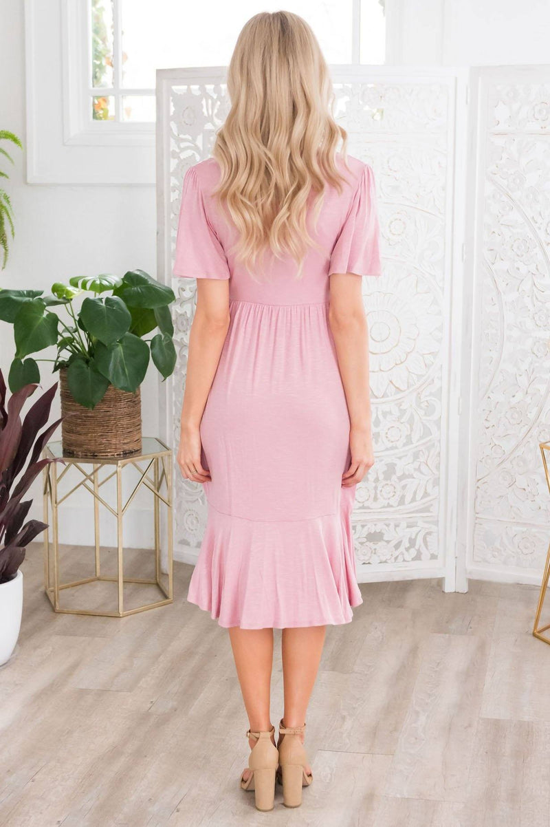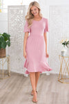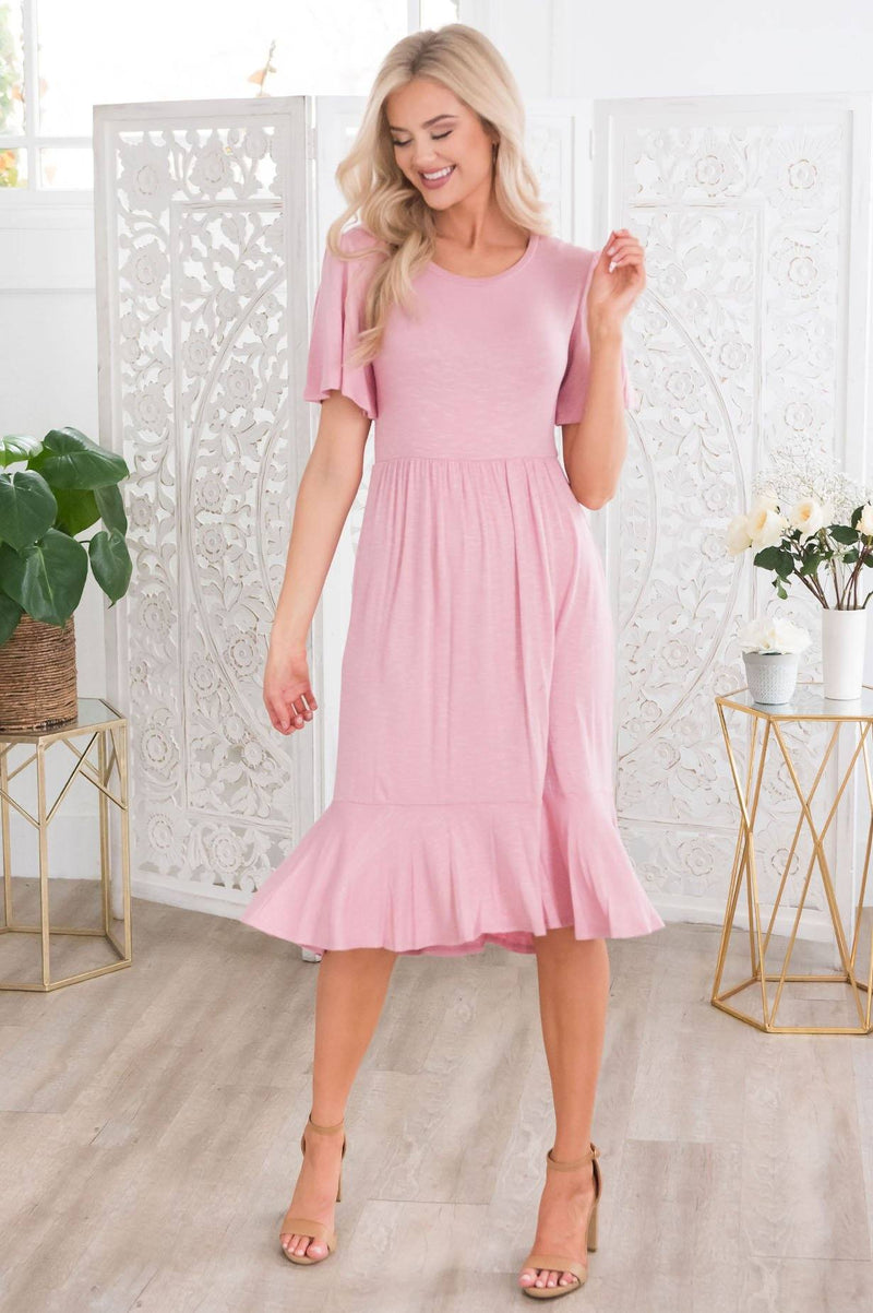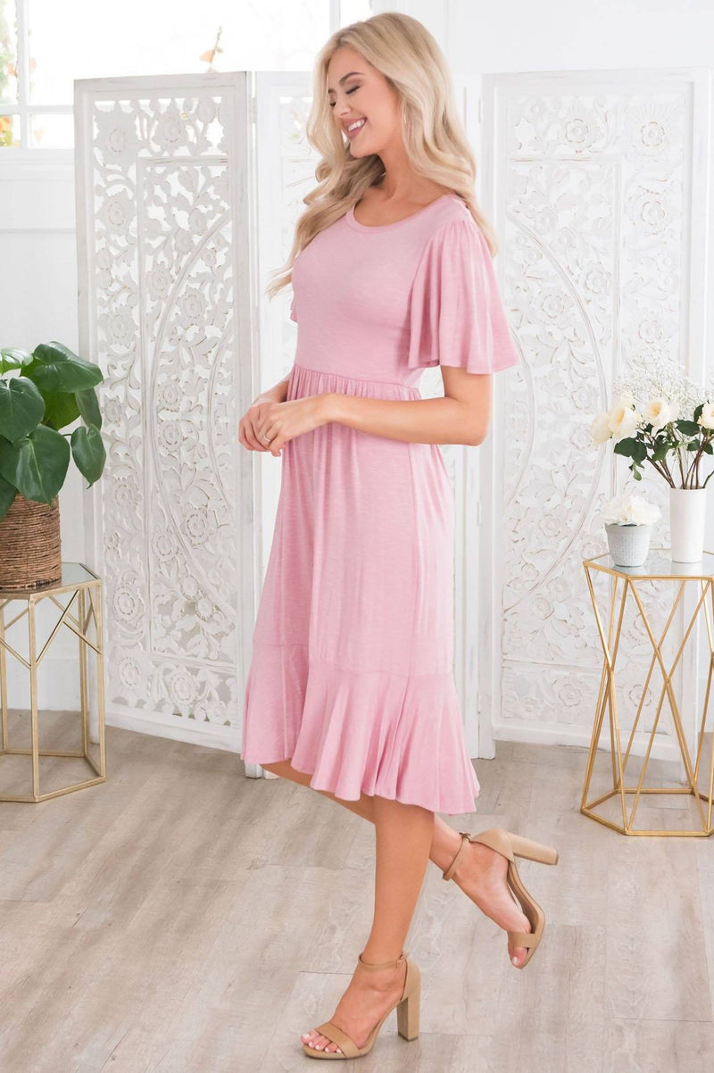Comfort and Style in one darling dress! The Leila is the perfect dress for all your spring & summertime events! This beautiful heather textured dress features a ruffle hem bottom, short flutter sleeves, and an elastic waist!