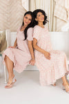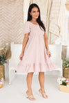 Kickstart your Summer wardrobe with the new Lennon dress! We simply adore this feminine modest dress! Featuring a lovely round neckline with a smocked bodice, short puff sleeves, pockets and double ruffle hem skirt! This is a true must have for everyone!