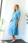 Twirling into a beautiful new day with the beautiful new Leo dress is! Featuring short cuffed puff sleeves, a flattering collared neckline with functional button bodice and a perfect length flowy hem skirt! This dress is so dreamy, it's a true must have!
