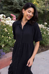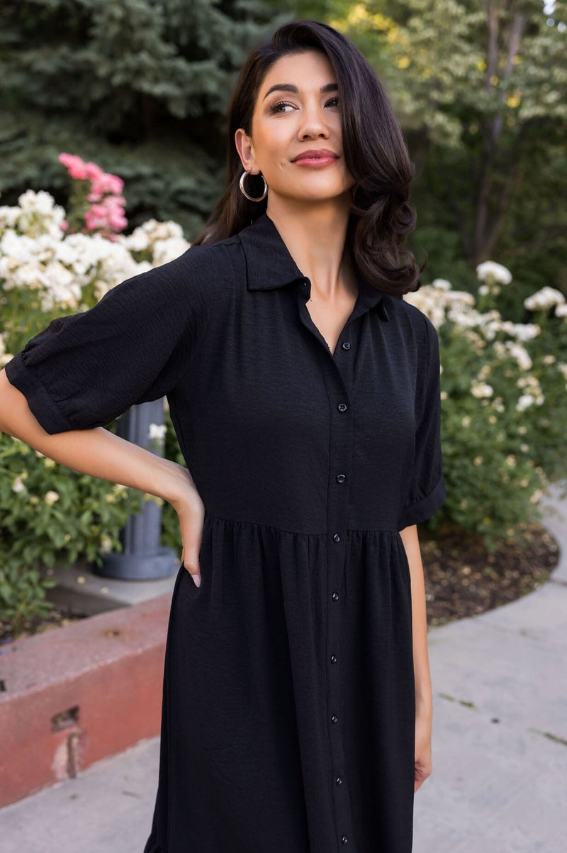 Twirling into a beautiful new day with the beautiful new Leo dress is! Featuring short cuffed puff sleeves, a flattering collared neckline with functional button bodice and a perfect length flowy hem skirt! This dress is so dreamy, it's a true must have!