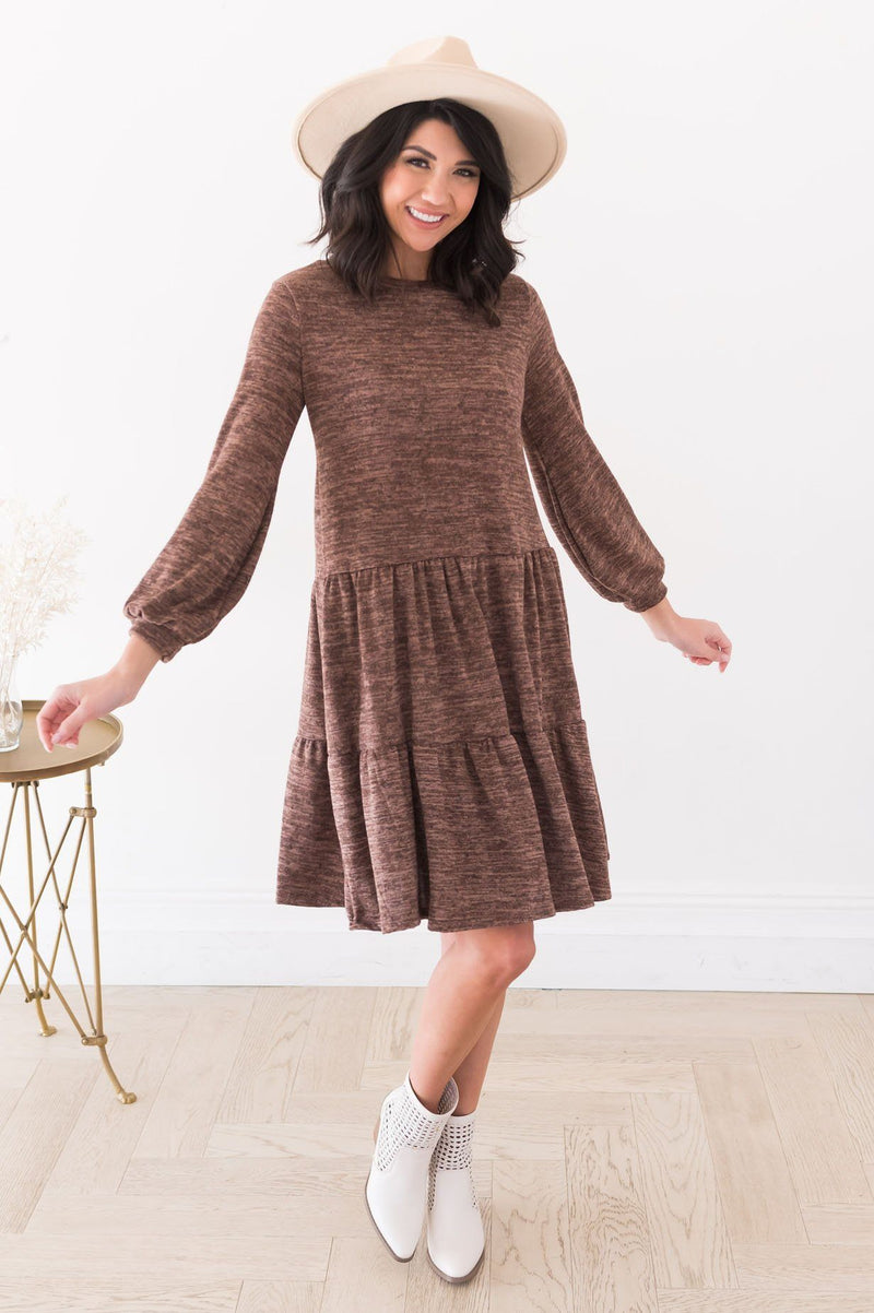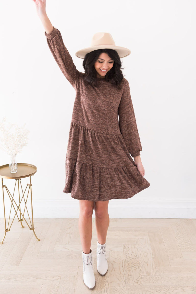 This beautiful heather brown dress is a must for every wardrobe! We are in love with the long sleeves and modest midi skirt! This simply gorgeous dress will be nothing but darling on you!