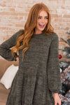 This beautiful hunter green dress is a must for every wardrobe! We are in love with the long sleeves and modest midi tiered skirt! This simple yet gorgeous dress will be nothing but darling on you!